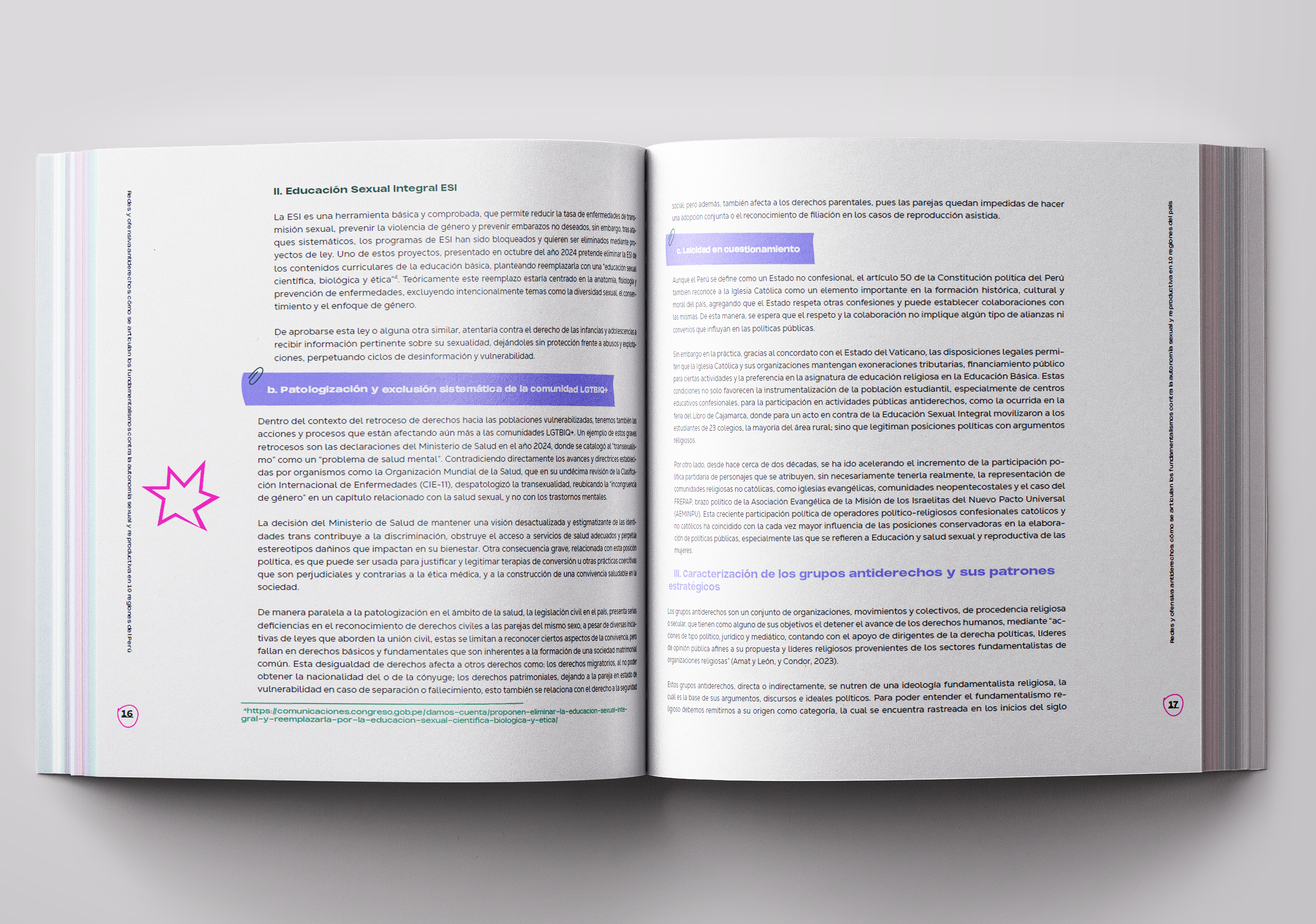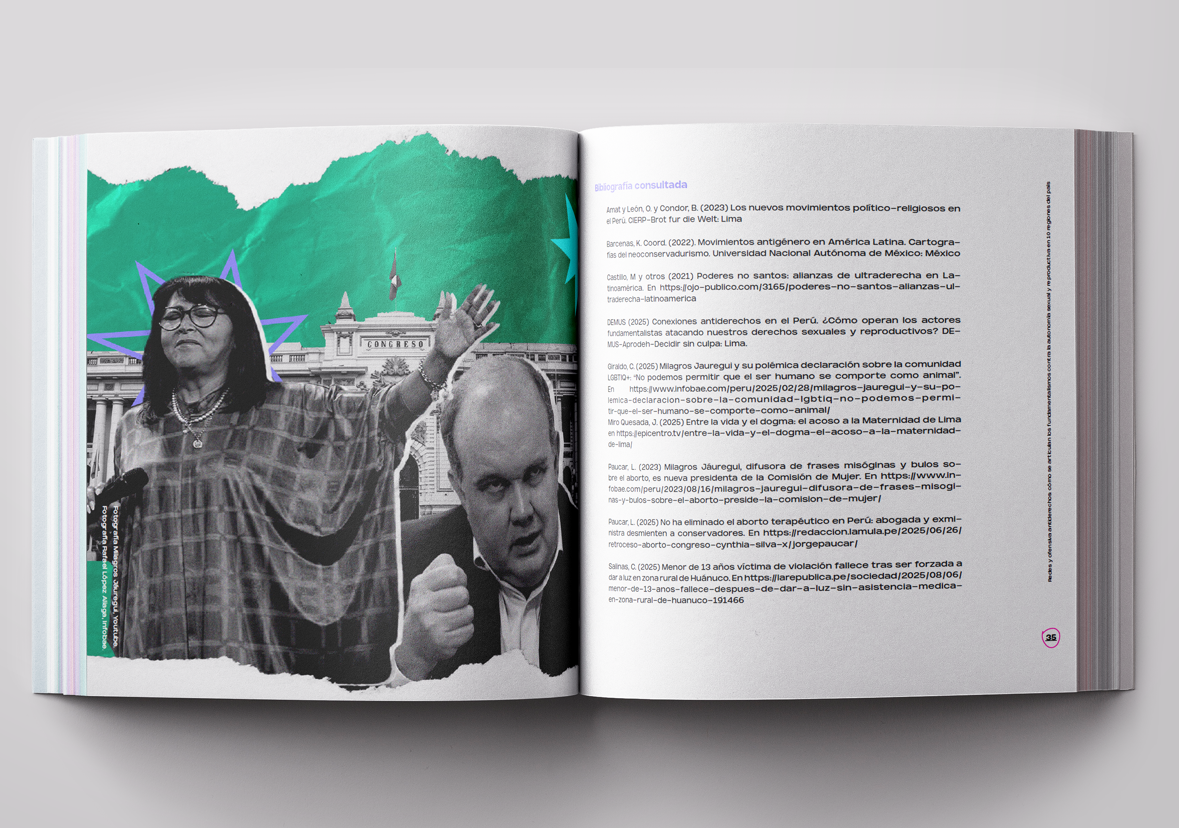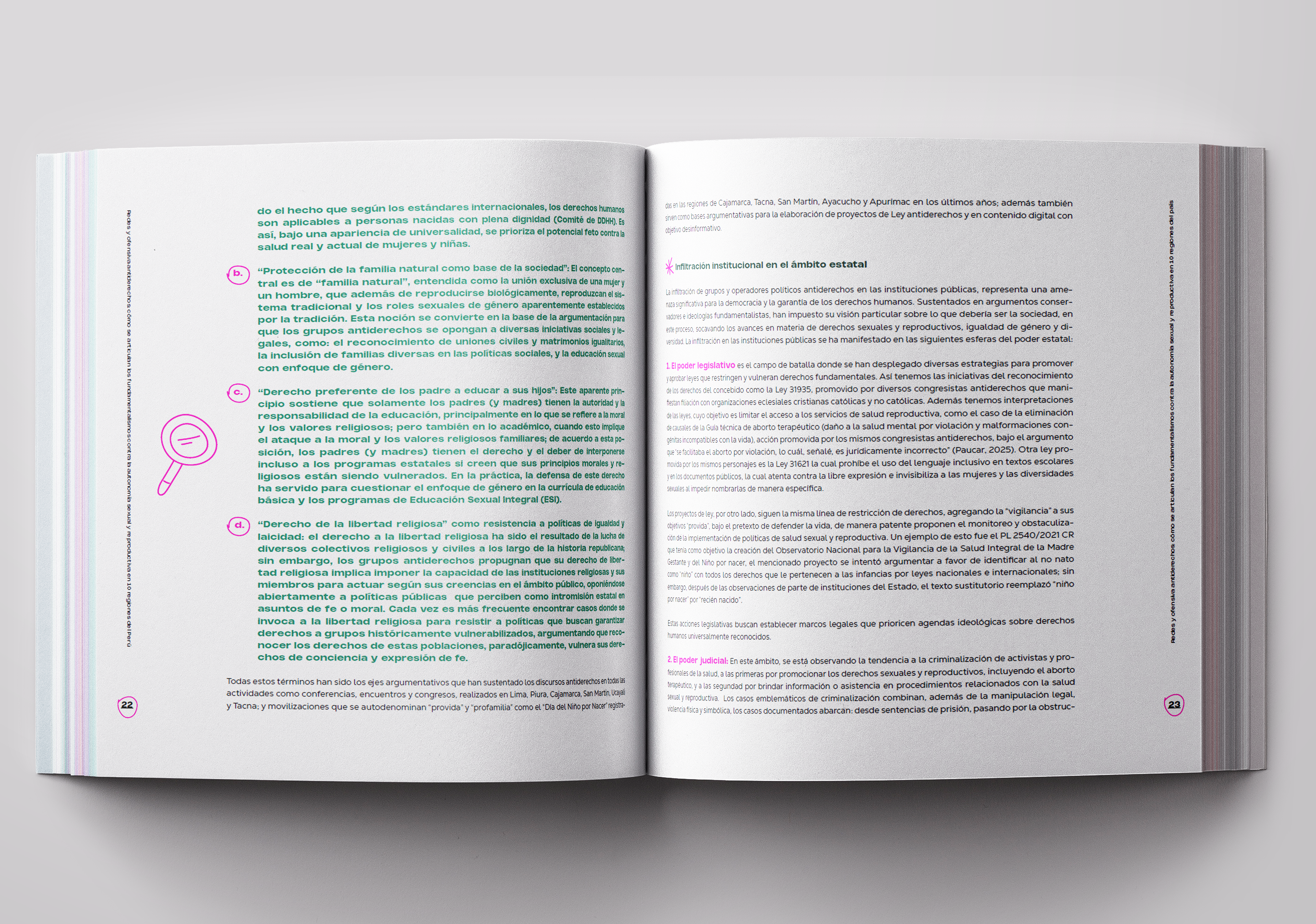 Diagramación de la publicación "REDES Y OFENSIVA ANTIDERECHOS - CÓMO SE ARTICULAN LOS FUNDAMENTALISMOS CONTRA LA AUTONOMÍA SEXUAL Y REPRODUCTIVA EN DIEZ REGIONES DE PERÚ", obra colectiva elaborada por DEMUS - Estudio para la defensa de los derechos de la Mujer.