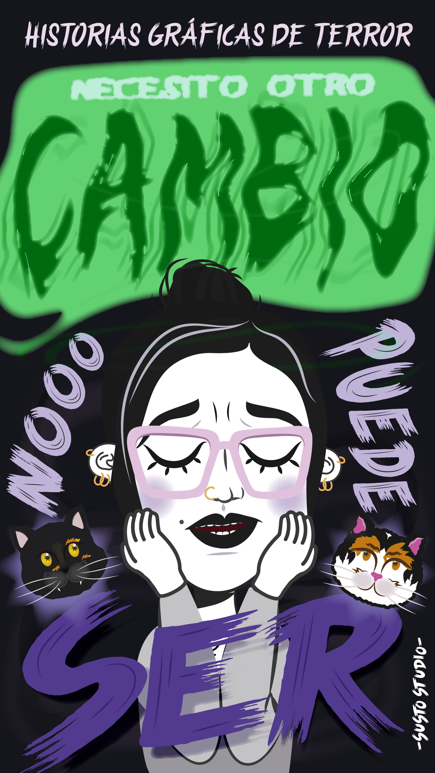 Ilustración y concepto creativo para la serie de historias gráficas de terror - Identidad de Susto Studio, proyecto personal.