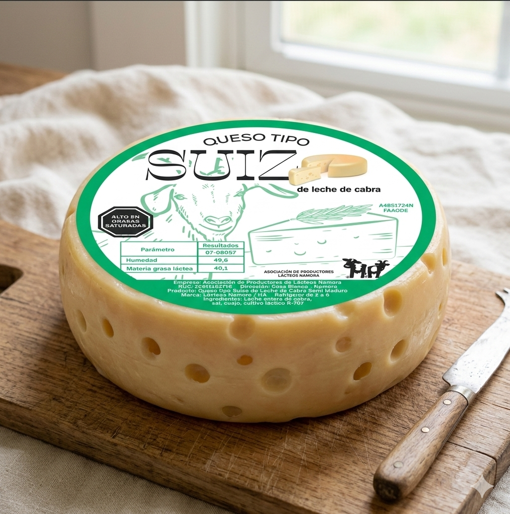 Desarrollo de identidad gráfica y etiqueta para su queso de cabra tipo suizo.