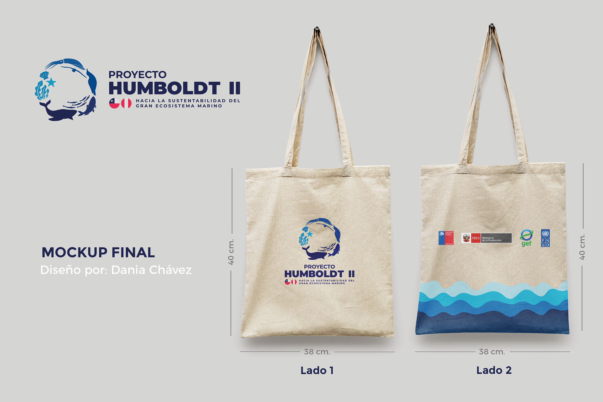 Diseño de totebag para Proyecto Humboldt siguiendo lineamientos gráficos.