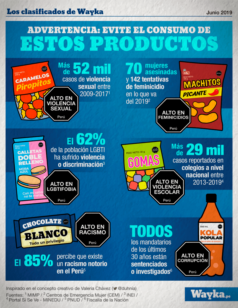 Creación ad honorem de concepto creativo para la infografía sobre la situación social en el Perú usando los octógonos para el medio periodístico Wayka.
